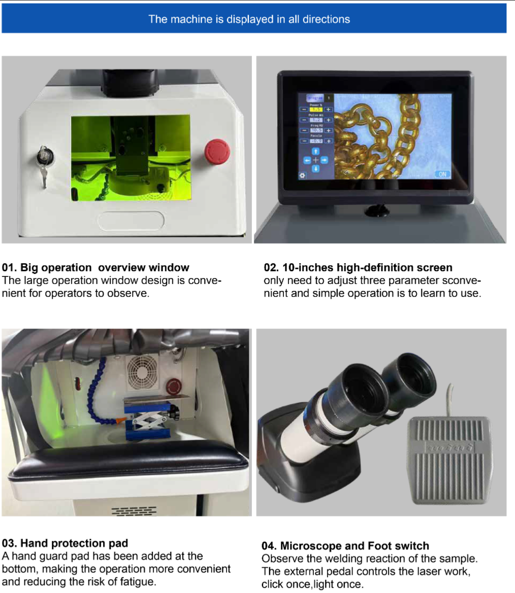 - Batch production in jewelry factories: Chain link splicing spot welding, claw setting/channel setting reinforcement, spot welding of jewelry main structures, connection of special-shaped components. Suitable for batch production of necklaces, bracelets, earrings, etc.;