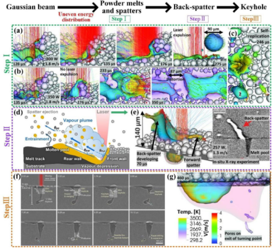 In metal laser additive manufacturing technology, the energy distribution of the laser beam has a significant impact on the quality of printed parts. Although Gaussian beams have been widely used in metal laser additive manufacturing equipment, they suffer from serious drawbacks such as unstable printing quality, low energy utilization, and narrow process windows in the additive manufacturing process. Among them, the melting process of the powder and the dynamics of the molten pool during the metal laser additive process are closely related to the thickness of the powder layer. Due to the presence of powder splashing and erosion zones, the actual thickness of the powder layer is higher than the theoretical expectation. Secondly, the steam column caused the main backward jet splashes. The metal vapor collides with the rear wall to form splashes, which are sprayed along the front wall perpendicular to the concave area of the molten pool (as shown in Figure 3). Due to the complex interaction between the laser beam and splashes, the ejected splashes can seriously affect the printing quality of subsequent powder layers. In addition, the formation of keyholes in the melt pool also seriously affects the quality of printed parts. The internal pores of the printed piece are mainly caused by unstable locking holes.