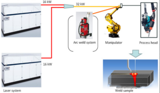 The Norwegian Institute of Industrial Technology and Lule University of Technology in Sweden studied the structural uniformity of composite welded joints under 15kW for 45mm thick micro-alloyed high-strength low-alloy steel. Osaka University and Egypt’s Central Metallurgical Research Institute used a 20kW fiber laser to conduct research on the single-pass laser-arc hybrid welding process of thick plates (25mm), using a bottom liner to solve the bottom hump problem. The Danish Force Technology Company used two 16 kW disk lasers in series to conduct research on the hybrid welding of 40mm thick steel plates at 32 kW, indicating that high-power laser-arc welding is expected to be used in offshore wind power tower base welding, as shown in Figure 2. Harbin Welding Co., Ltd. is the first in the country to master the core technology and equipment integration technology of high-power solid laser-melting electrode arc hybrid heat source welding. It is the first time to successfully apply high-power solid laser-dual-wire melting electrode arc hybrid welding technology and equipment to high-end equipment in my country. manufacturing.