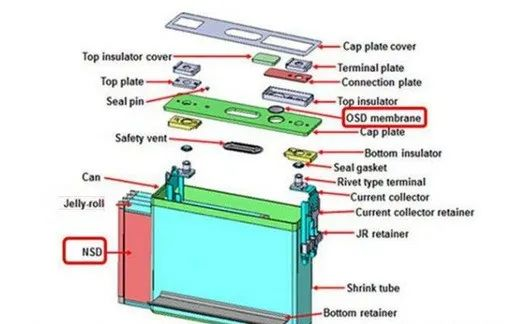 The structure of the square aluminum shell lithium battery is as shown in the figure, which is composed of battery core (positive and negative electrode sheets, separator), electrolyte, shell, top cover and other components.