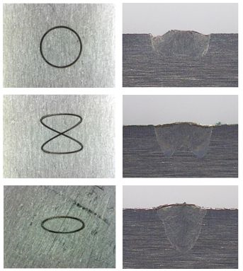 Welds obtained under different swing trajectories