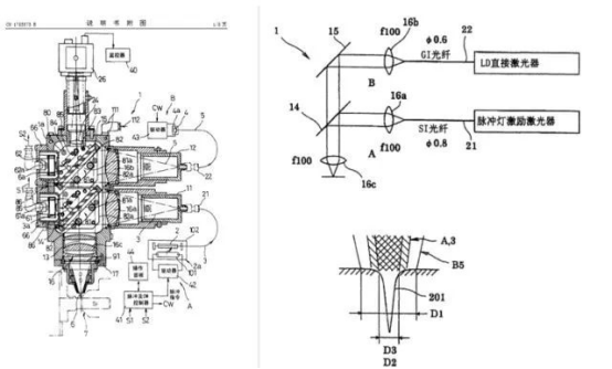 In 2004, when fiber laser technology had not yet been widely commercially applied, Panasonic used LD semiconductor lasers and pulse lamp-pumped YAG lasers for mixed output (the scheme is shown in the figure below).
