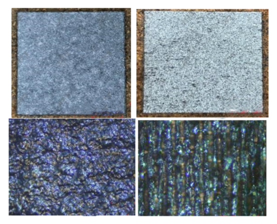 Through microscopic observation, sheet metal has remelted after being processed by high-power continuous fiber laser. After the steel is processed by the MOPA pulse fiber laser, the base material is slightly damaged and the texture of the base material is maintained; after the steel is processed by the continuous fiber laser, serious damage and molten material are produced.