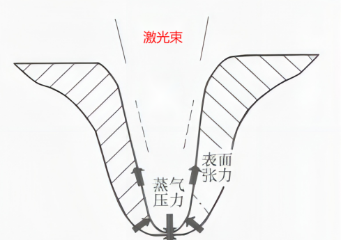 During laser deep penetration welding, the material undergoes severe vaporization, and the expansion pressure generated by high-temperature steam expels the liquid metal, forming small holes. In addition to the vapor pressure and ablation pressure (also known as evaporation reaction force or recoil pressure) of the material, there are also surface tension, liquid static pressure caused by gravity, and fluid dynamic pressure generated by the flow of molten material inside the small hole. Among these pressures, only steam pressure maintains the opening of the small hole, while the other three forces strive to close the small hole. To maintain the stability of the keyhole during the welding process, the vapor pressure must be sufficient to overcome other resistance and achieve equilibrium, maintaining the long-term stability of the keyhole. For simplicity, it is generally believed that the forces acting on the keyhole wall are mainly ablation pressure (metal vapor recoil pressure) and surface tension.