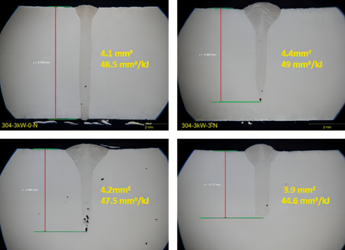 Background: Laser acts on the surface of materials, causing a large amount of metal to evaporate. The recoil pressure presses down on the molten pool, forming keyholes and plasma, resulting in an increase in melting depth. During the process of moving, the laser hits the front wall of the keyhole, and the position where the laser contacts the material will cause severe evaporation of the material. At the same time, the keyhole wall will experience mass loss, and the evaporation will form a recoil pressure that will press down on the liquid metal, causing the inner wall of the keyhole to fluctuate downward and move around the bottom of the keyhole towards the back of the molten pool. Due to the fluctuation of the liquid molten pool from the front wall to the back wall, the volume inside the keyhole is constantly changing, The internal pressure of the keyhole also changes accordingly, which leads to a change in the volume of the plasma sprayed out. The change in plasma volume leads to changes in shielding, refraction, and absorption of laser energy, resulting in changes in the energy of the laser reaching the material surface. The entire process is dynamic and periodic, ultimately resulting in a sawtooth shaped and wavy metal penetration, and there is no smooth equal penetration weld, The above figure is a cross-sectional view of the center of the weld obtained by longitudinal cutting parallel to the center of the weld, as well as a real-time measurement of the keyhole depth variation by IPG-LDD as evidence.
