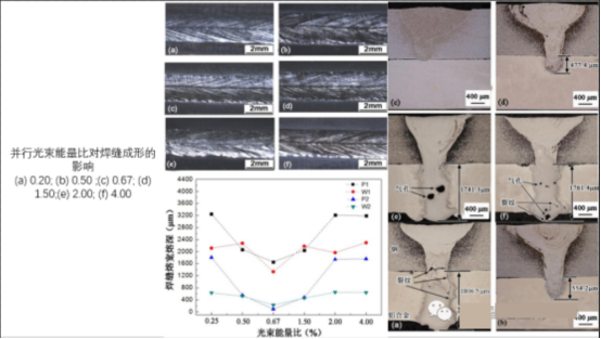 Effect of parallel beam-energy ratio on welding seam formation