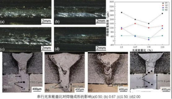 Effect of serial beam-energy ratio on welding seam formation