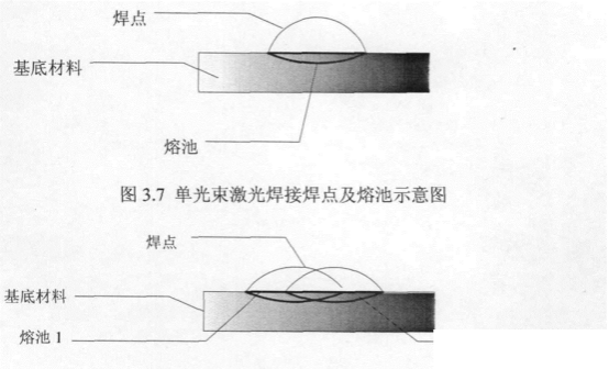 In the double-beam laser powder deposition welding experiment, since the two laser beams are distributed side by side on both sides of the bridge wire, the range of the laser and the substrate is larger than that of single-beam laser powder deposition welding, and the resulting solder joints are vertical to the bridge wire. The wire direction is relatively elongated. Figure 3.6 shows the solder joints obtained by single-beam and double-beam laser powder deposition welding. During the welding process, whether it is a double-beam laser welding method or a single-beam laser welding method, a certain molten pool is formed on the base material through heat conduction. In this way, the molten base material metal in the molten pool can form a metallurgical bond with the molten self-fluxing alloy powder, thereby achieving welding. When using a dual-beam laser for welding, the interaction between the laser beam and the base material is the interaction between the action areas of the two laser beams, that is, the interaction between the two molten pools formed by the laser on the material. In this way, the resulting new fusion The area is larger than that of single-beam laser welding, so the solder joints obtained by double-beam laser welding are stronger than single-beam laser welding.