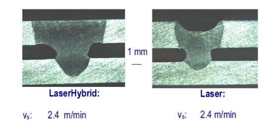 Fig. 5 Comparison between LaserHybrid and Laser welding without filler wire