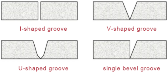 In order to ensure the penetration and quality of welded joints, and reduce welding deformation, the joints of welded parts are generally pre processed into various shapes before welding. Different welding grooves are suitable for different welding methods and weldment thicknesses. Common groove forms include: I-shaped, V-shaped, U-shaped, unilateral V-shaped, etc., as shown in the figure.